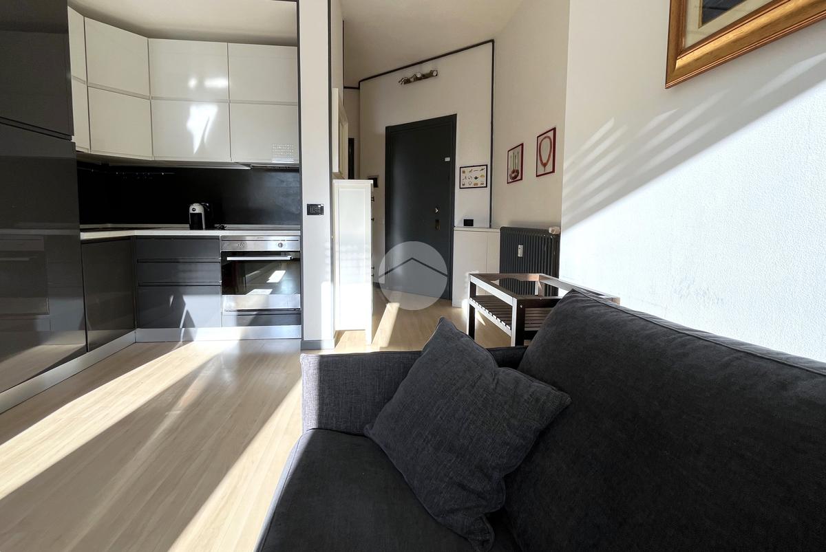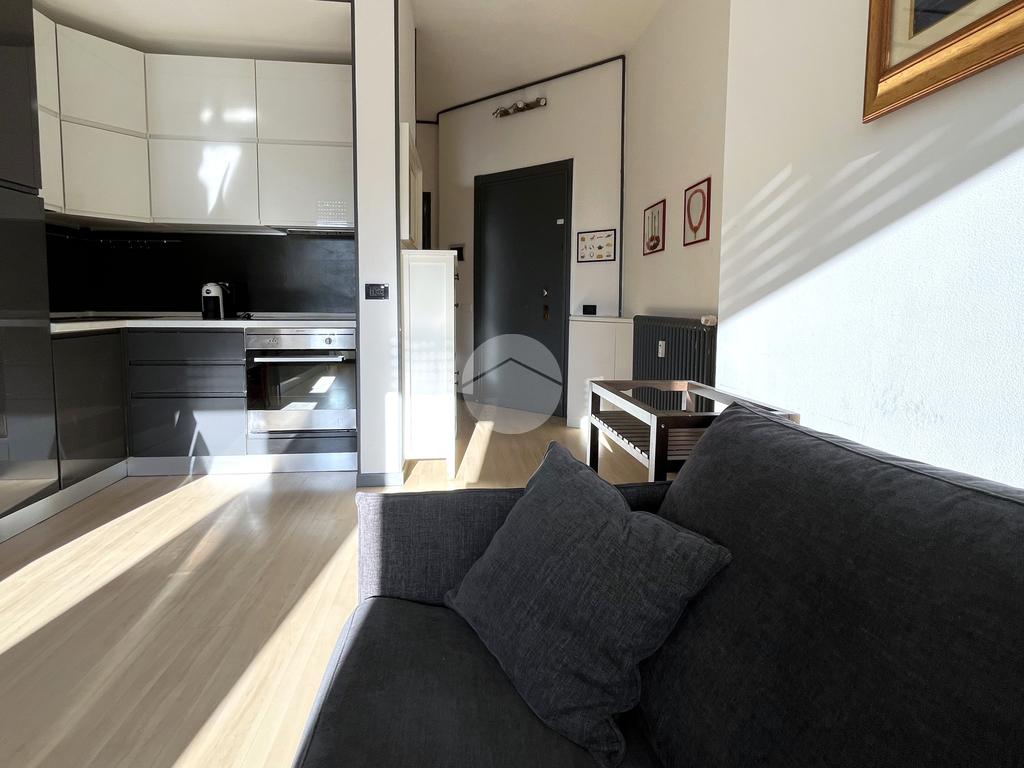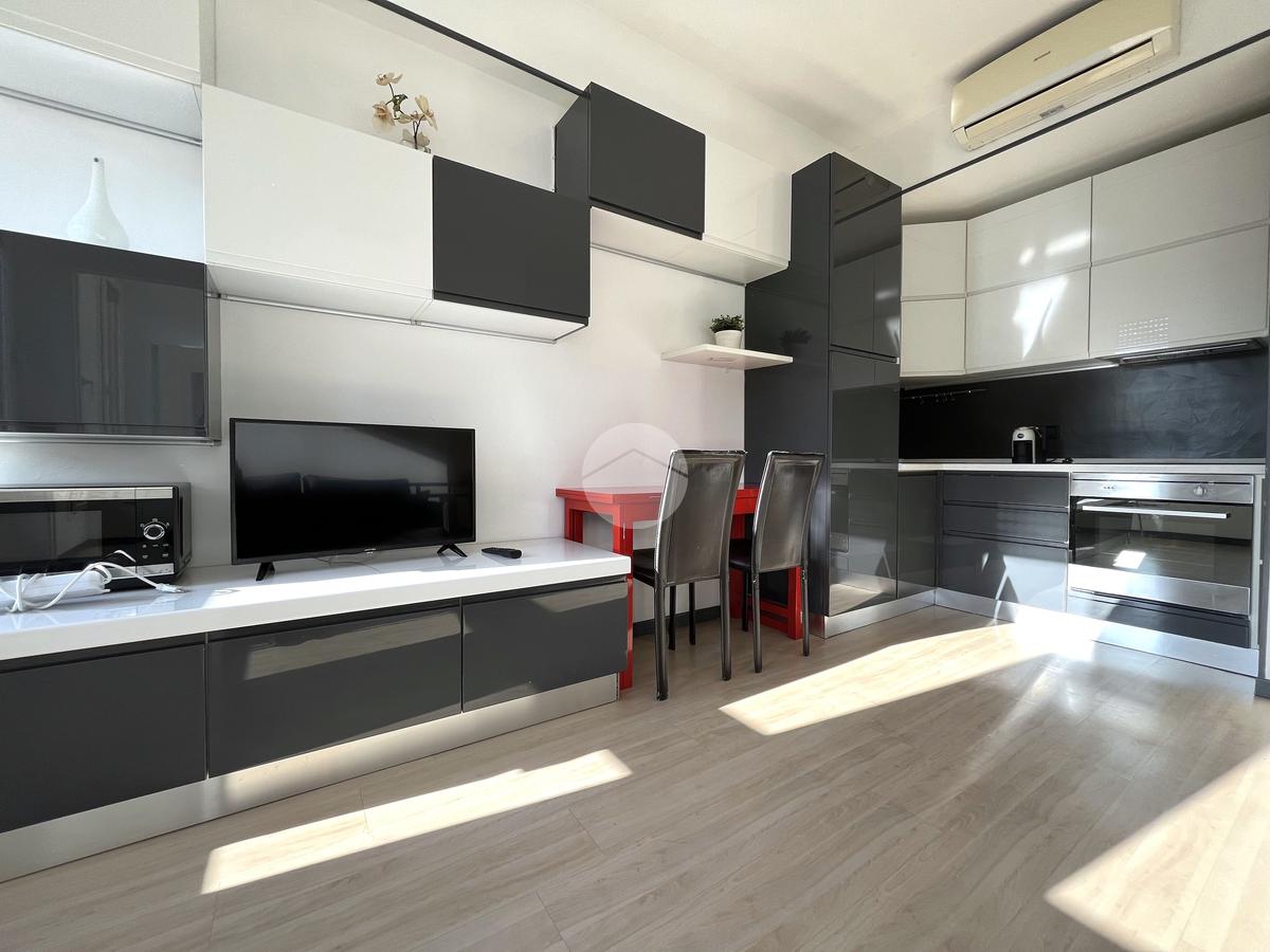 L’appartamento è composto da ingresso su luminosa zona giorno con cucina a vista, camera matrimoniale e bagno con box doccia.
